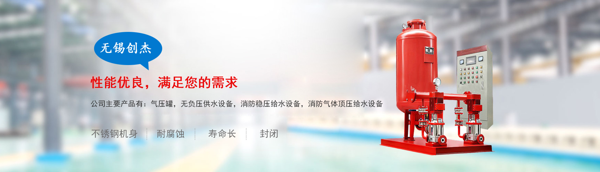 全國咨詢熱線:熱門關(guān)鍵詞: 氣壓罐 消防穩(wěn)壓給水設(shè)備 無負(fù)壓供水設(shè)備 氣體頂壓消防供水設(shè)備 壓力容器
